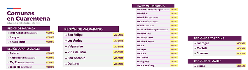 Comunas con cuarentena vigente. Actualizado al 08/07/20